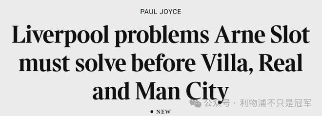 《泰晤士报》也指出,在迎战未来三场对维拉、皇马和曼城之前,斯洛特必须解决球队以下问题:第二落点的争抢、索博斯洛伊必须打中场、维尔茨和萨拉赫的取舍等等。总之,斯洛特需要做出一些重大的决定,来证明自己可以改变现状,现在不是抱怨的时候。